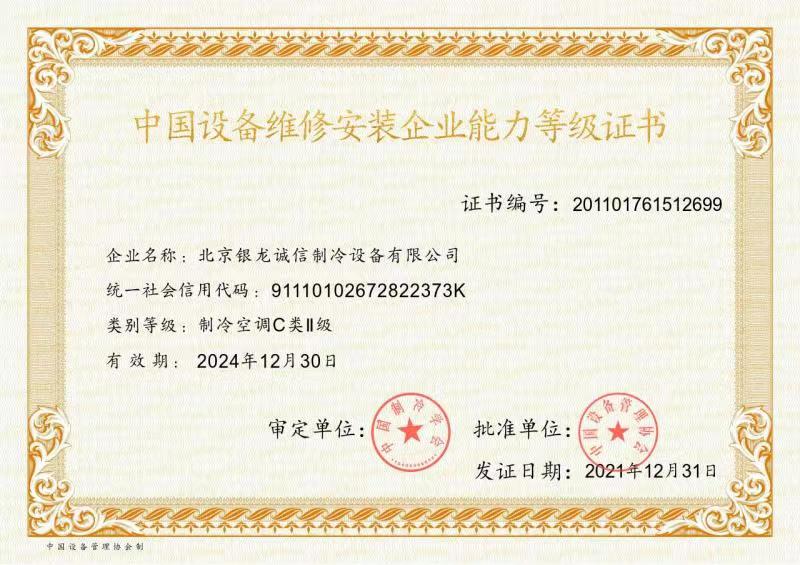 2007年:獲準(zhǔn)成為北京市制冷行業(yè)技術(shù)學(xué)會理事單位; 2009年:獲得北京市大興區(qū)百強(qiáng)企業(yè)認(rèn)證; 2009年:獲得國家高新技術(shù)企業(yè)認(rèn)證; 2011年:獲北京市安全生產(chǎn)先進(jìn)企業(yè)稱號,節(jié)能環(huán)保先進(jìn)單位; 2012年:通過了國家高新技術(shù)企業(yè)復(fù)審; 2013年:公司董事長獲"2013北京先進(jìn)企業(yè)家"榮譽(yù)稱號; 2014年:獲2014年度中國冷庫工程安裝設(shè)計(jì)造價行業(yè)十大品牌;